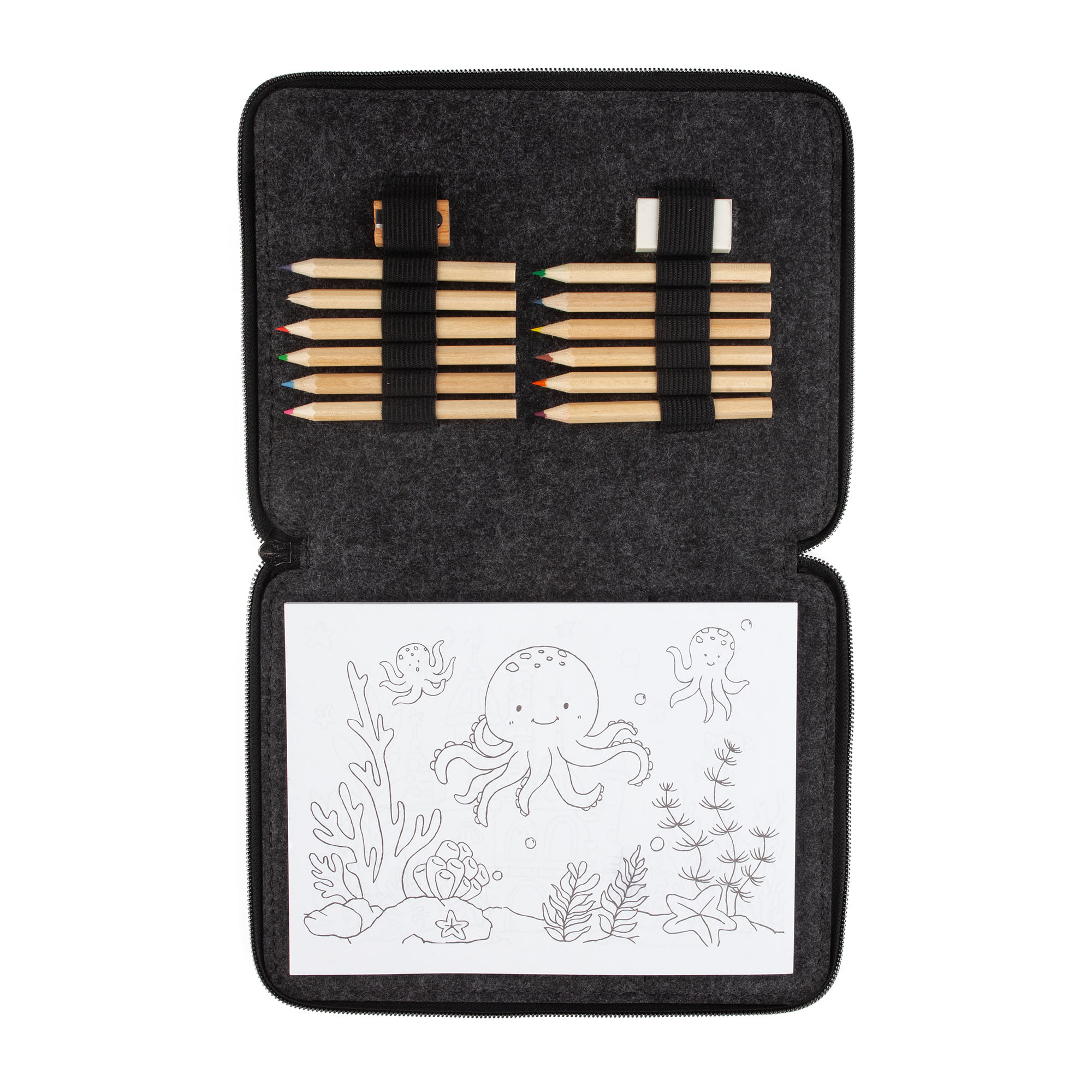 Альбом-раскраска (A5, 14 х 19 см) на 48 листов с готовыми контурами для раскрашивания. Блок можно заменить на подходящий по формату.