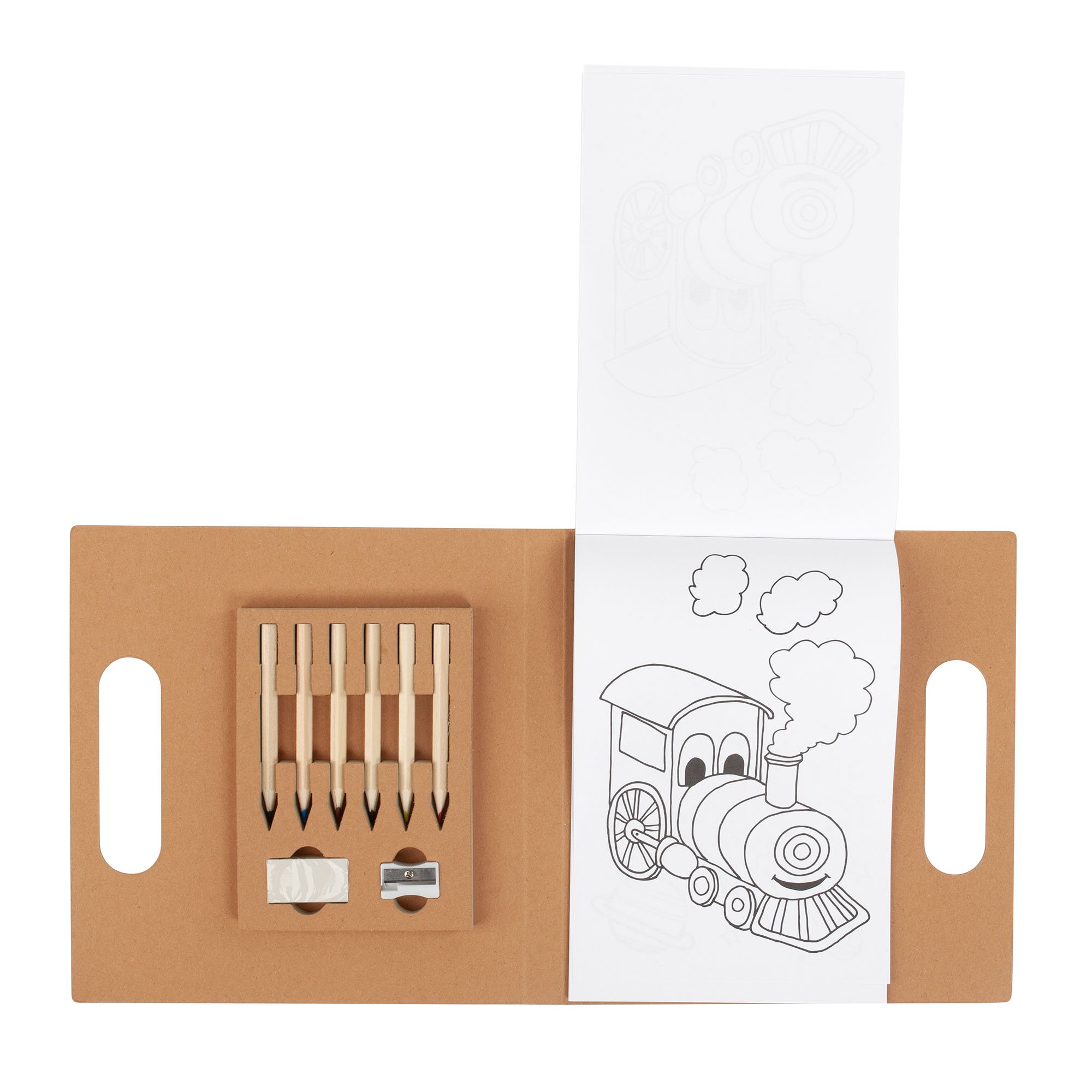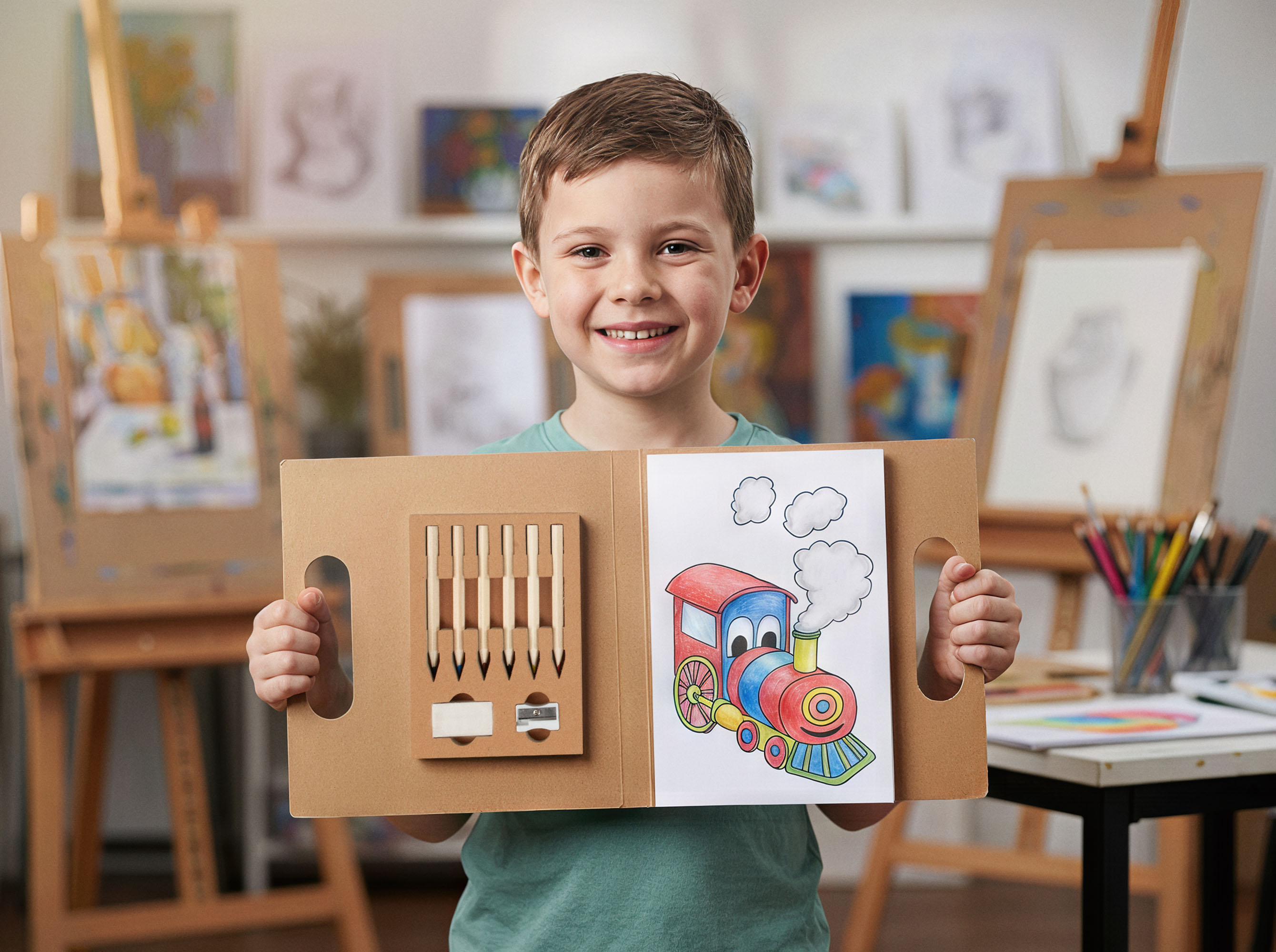 Картонная папка позволяет удобно хранить все принадлежности и рисунки.