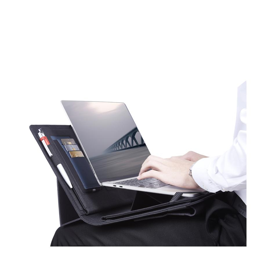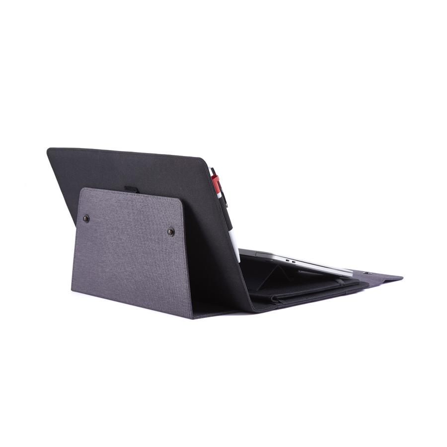 Папка в разложенном виде образует горизонтальную площадку под ноутбук.