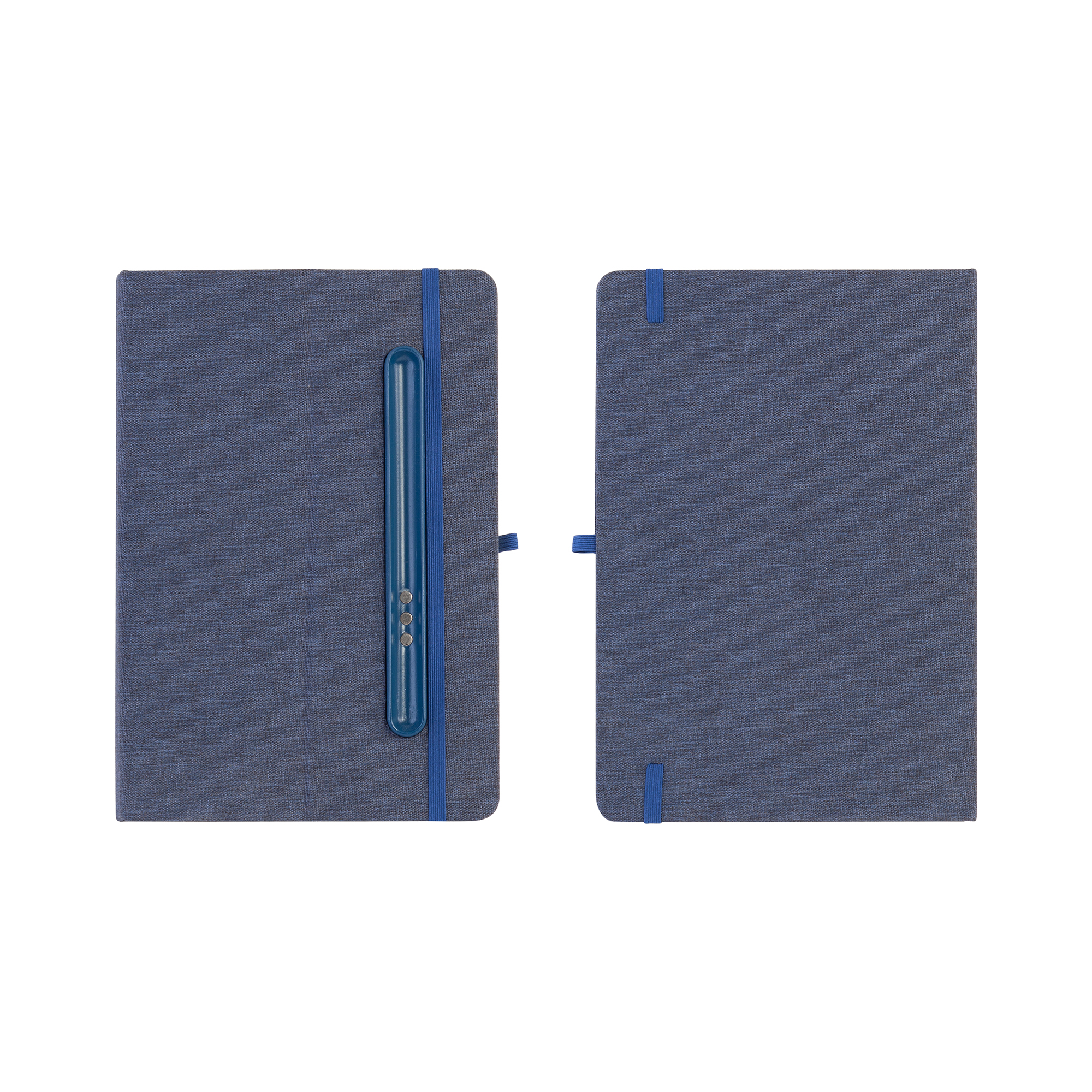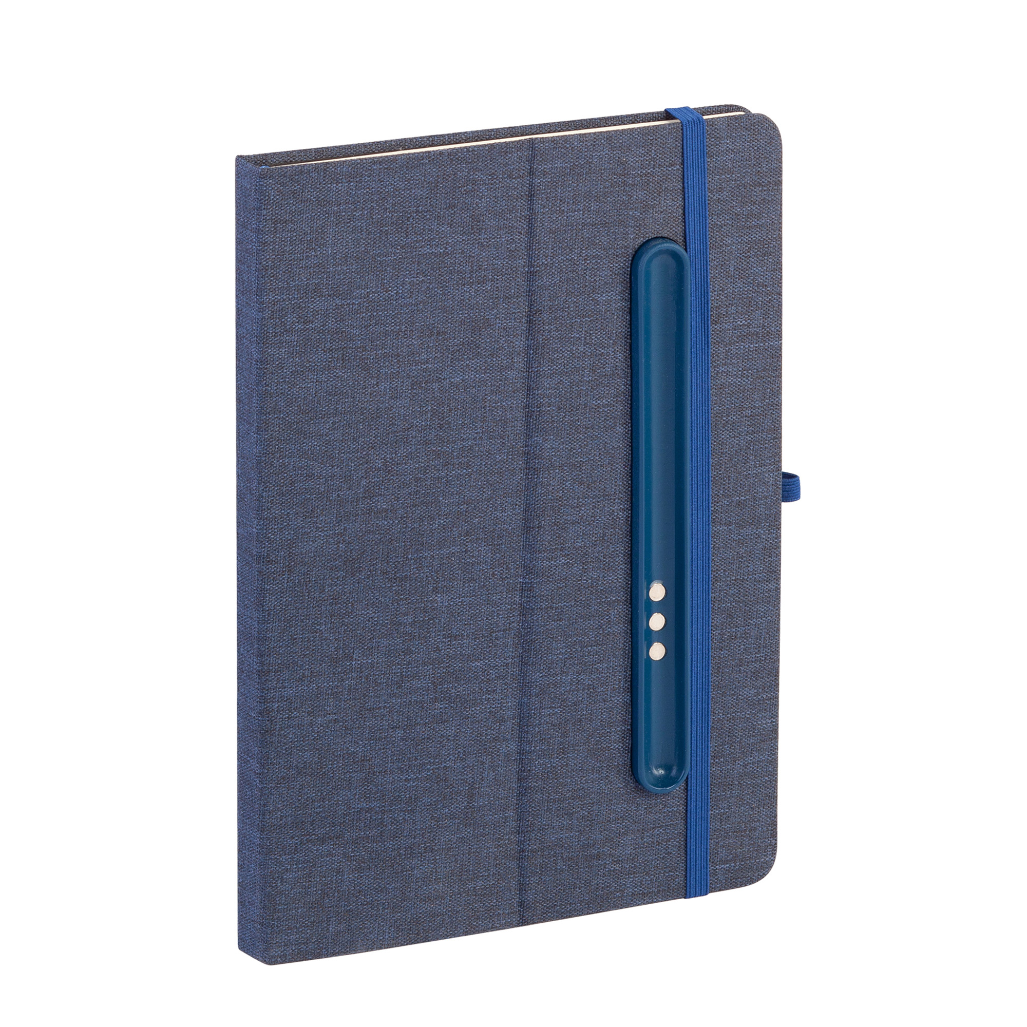 Материал обложки изготовлен из переработанного (RPET) пластика. Магниты прочно и надёжно закрепляют металлическую ручку на обложке.