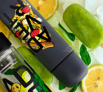 Термос с прорезиненной поверхностью, при гравировке дающей интересный эффект.