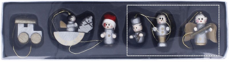 Набор из 6 новогодних украшений в коробке с прозрачной крышкой.