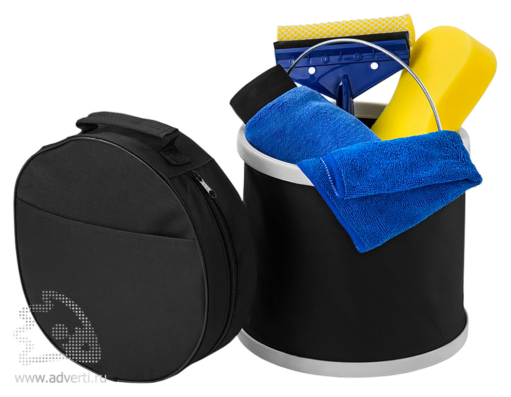 Помывка автомобиля вовсе не означает того, что вы должны возить с собой огромное ведро и громоздкие приспособления. Вовсе нет: вы вполне можете обойтись этим компактным набором из складного ведерка, салфетки, губки, рукавицы и скребка, которые помещаются в удобный чехол. Объем ведра составляет 9 литров.