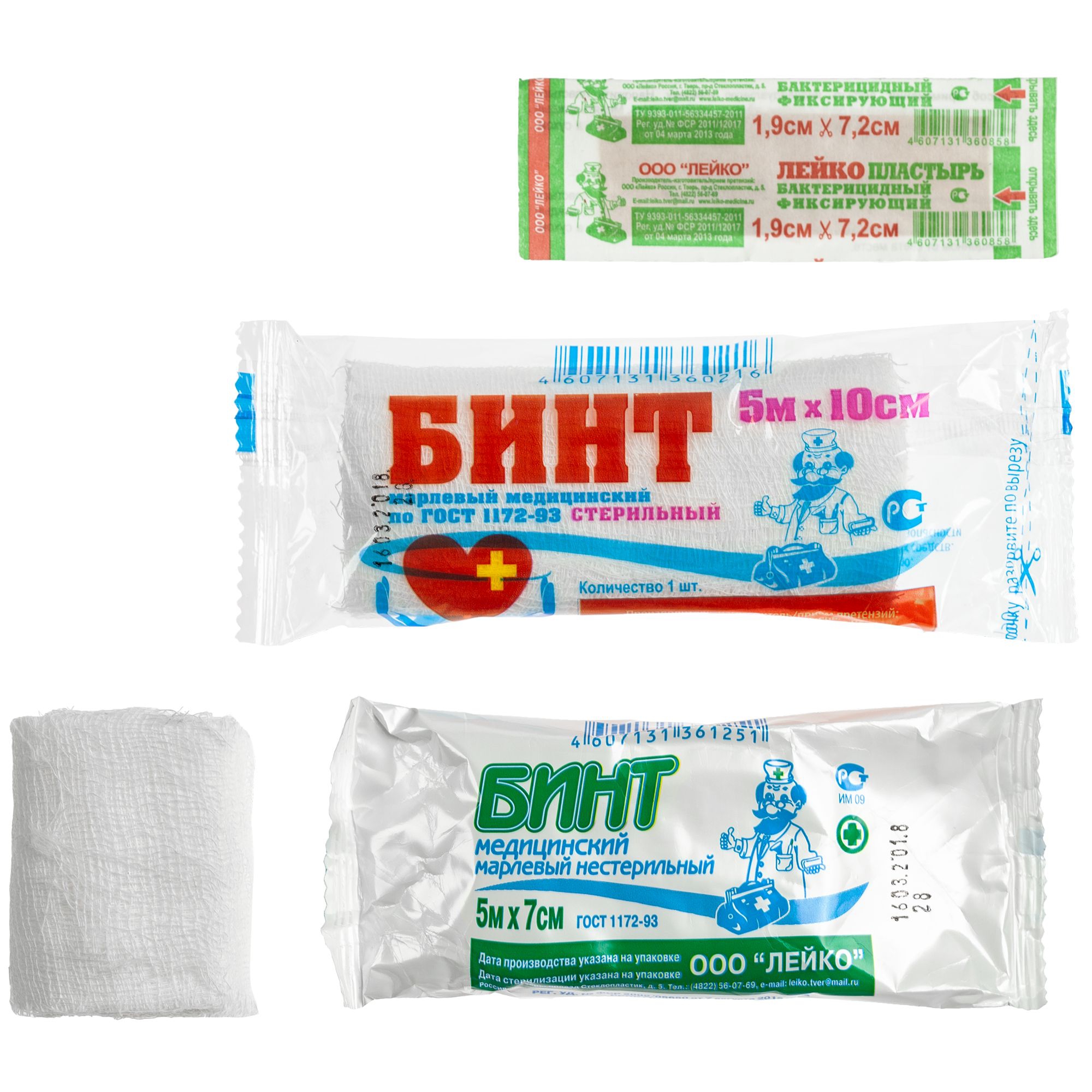 – бинт марлевый медицинский стерильный шириной 10 см (5 м);