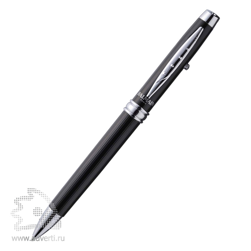 Ручка от французского бренда Balmain. 3 в 1. При нажатии включается лазерная указка. Заправлена немецкими черными чернилами.