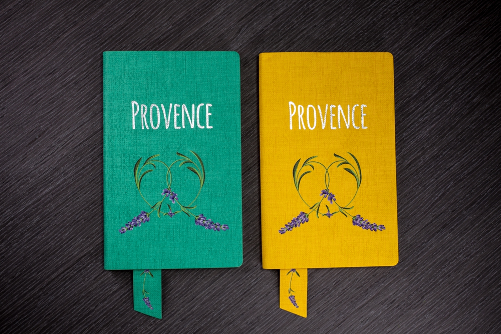 На фото: ежедневники «Provence» с УФ-печатью и тиснением фольгой