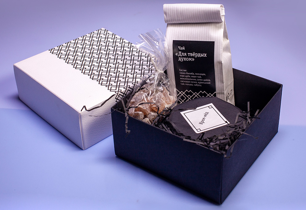 Чай вполне может быть истинно мужским напитком. Набор «Для твердых духом» – лучшее тому доказательство. Выразительный букет составляют гинкго-билоба, кора дуба, курильский дуб, чабрец и иван-чай. Подайте к нему белоснежный кокосовый крем-мед – воплощение нежности и брутальности в одной баночке. А если сладости недостает, возьмите немного леденцового сахара.