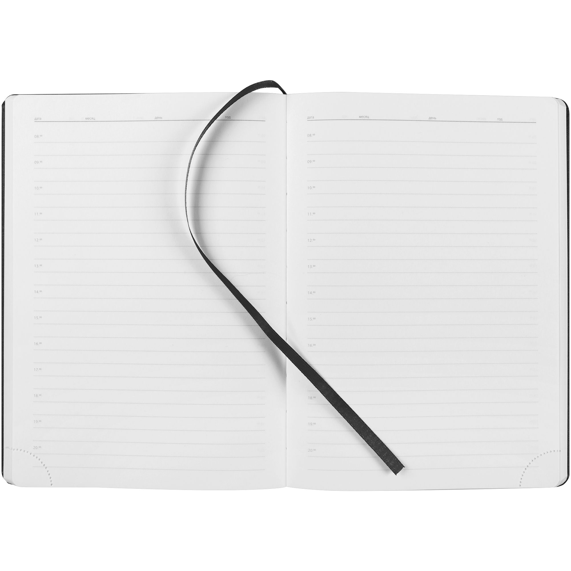 Ежедневник с твердой обложкой, дополнен ляссе в цвет обложки.