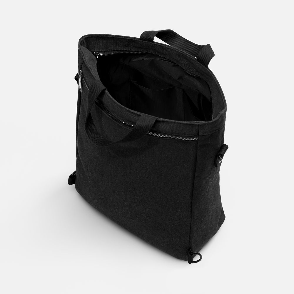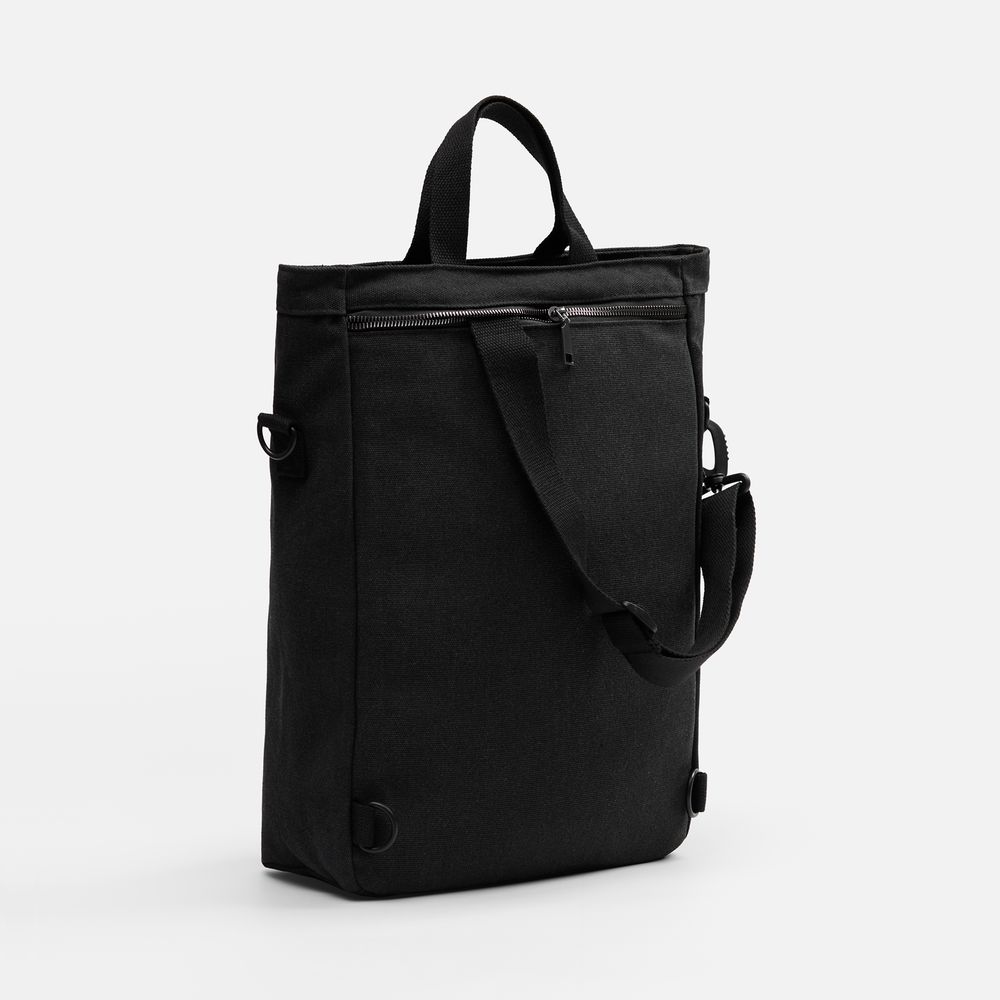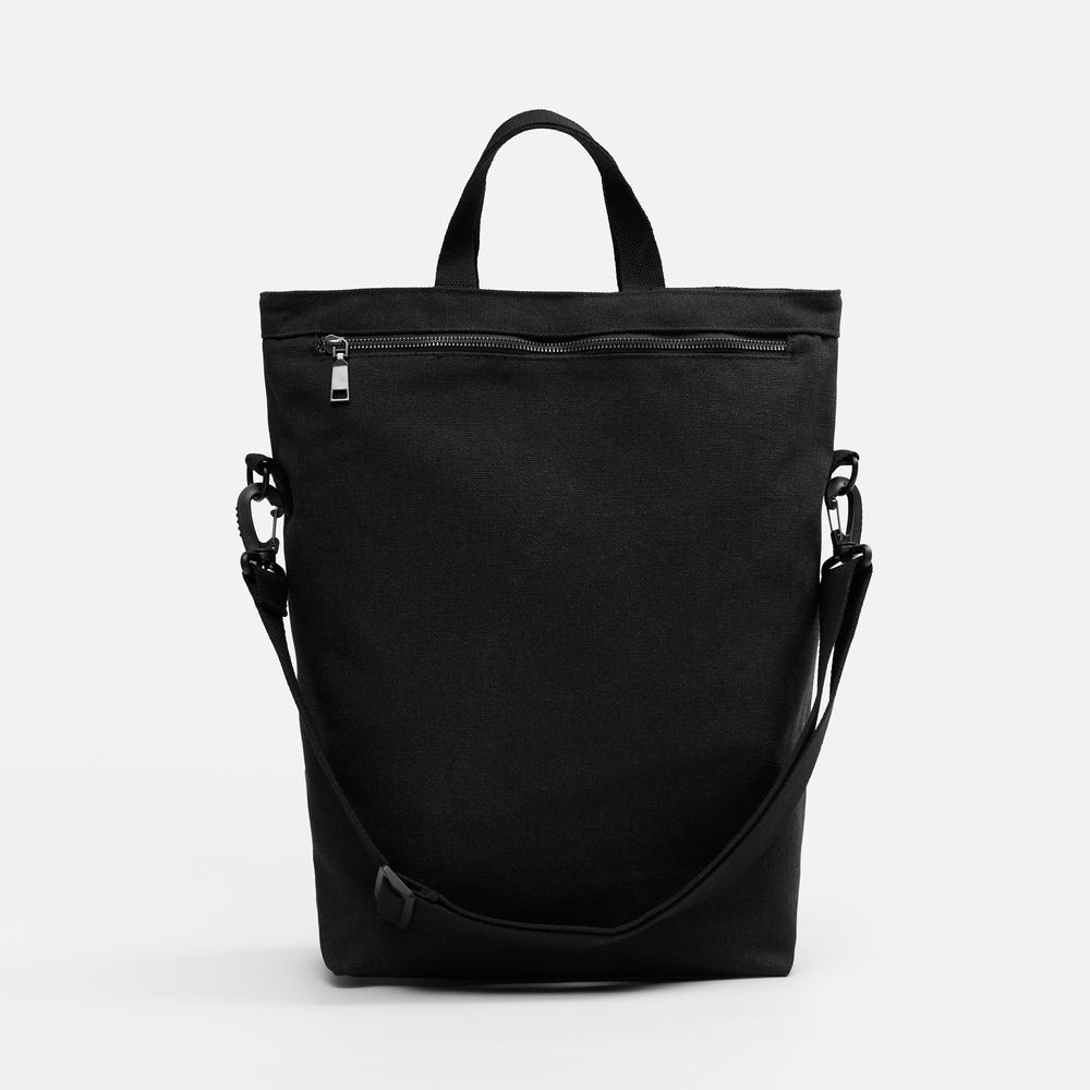 2 наплечных регулируемых ремня для использования в качестве рюкзака убираются в карман на молнии.