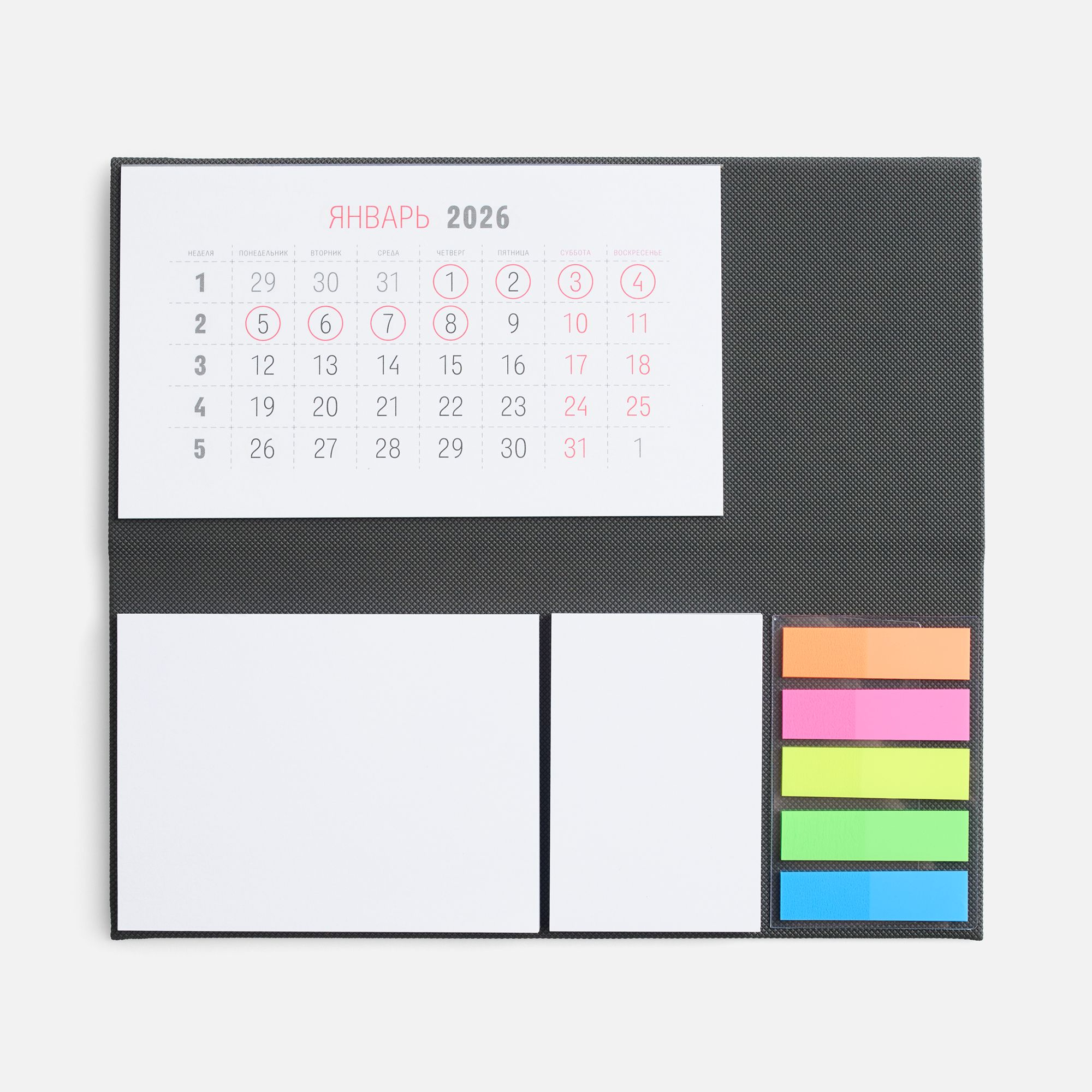 Блок с клеевым слоем 10х7,5 см, 50 листов; блок с клеевым слоем 5х7,5 см, 50 листов; пластиковые закладки 1,2х4,3 см, 5х25 листов.