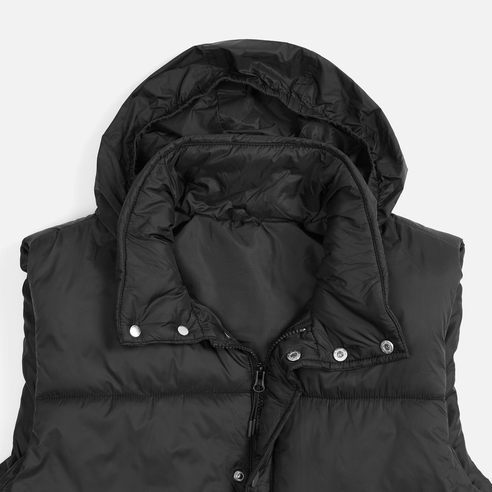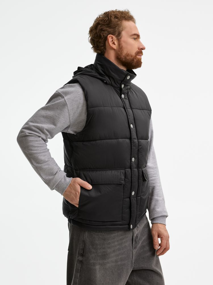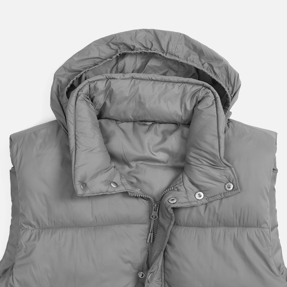 Капюшон без подкладки убирается в воротник и плотно фиксируется на потайные кнопки.