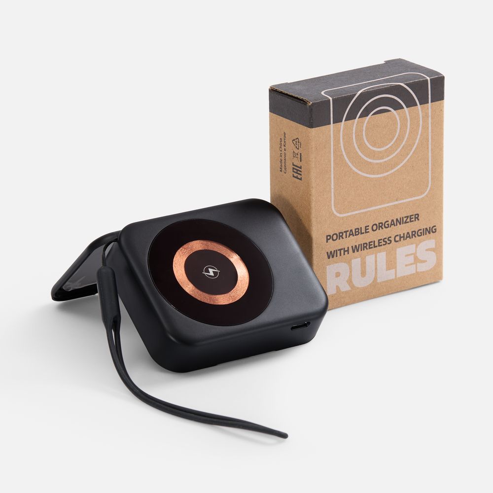 Rules — компактная станция для беспроводной зарядки, которая укомплектована набором переходников и аксессуарами для ухода за гаджетами.