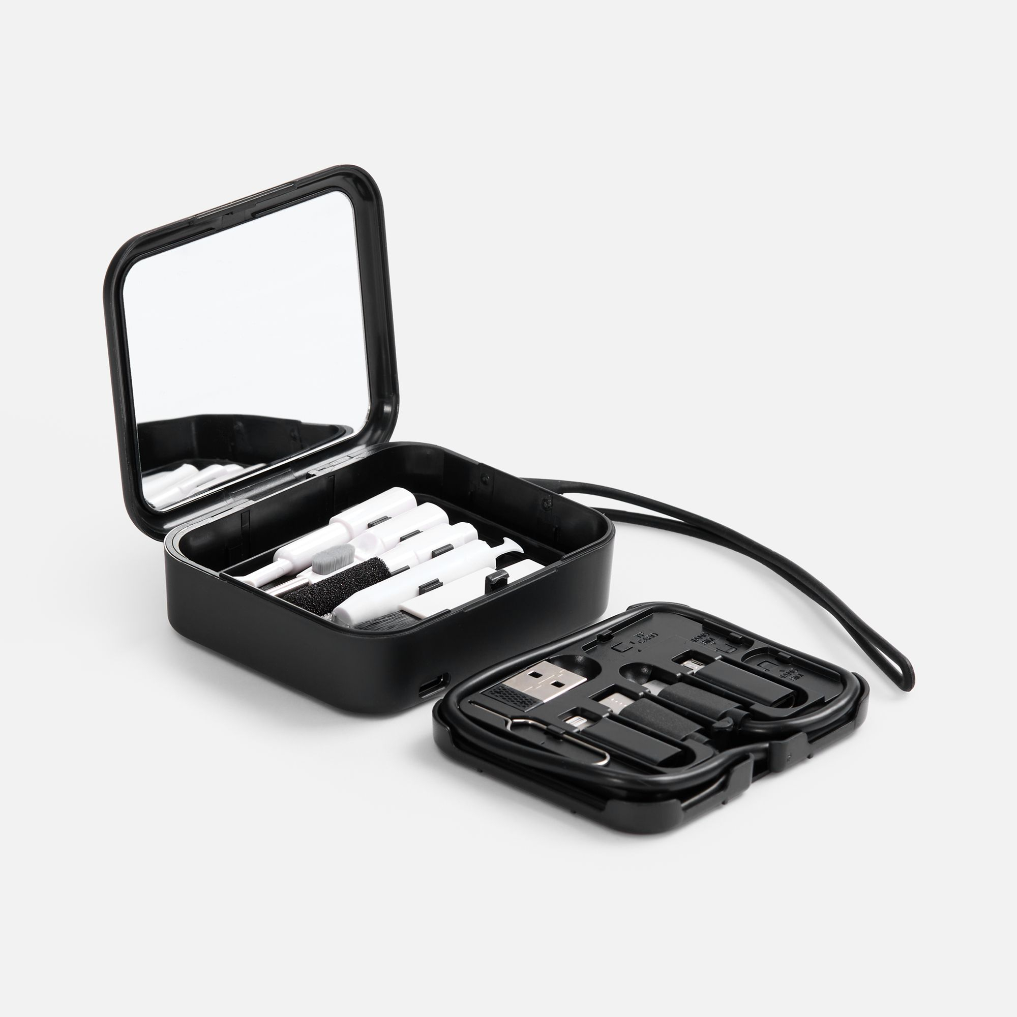 Этот компактный набор легко разместить в портфеле, рюкзаке или даже дамской сумочке. Он пригодится дома, в офисе и, конечно же, в путешествии.