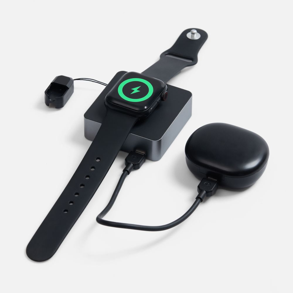 Единая зона беспроводной зарядки для смартфона, наушников и часов.