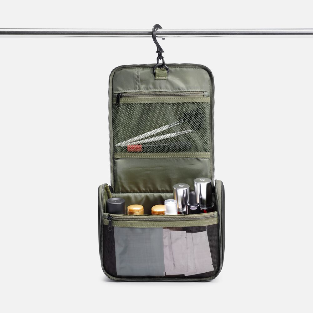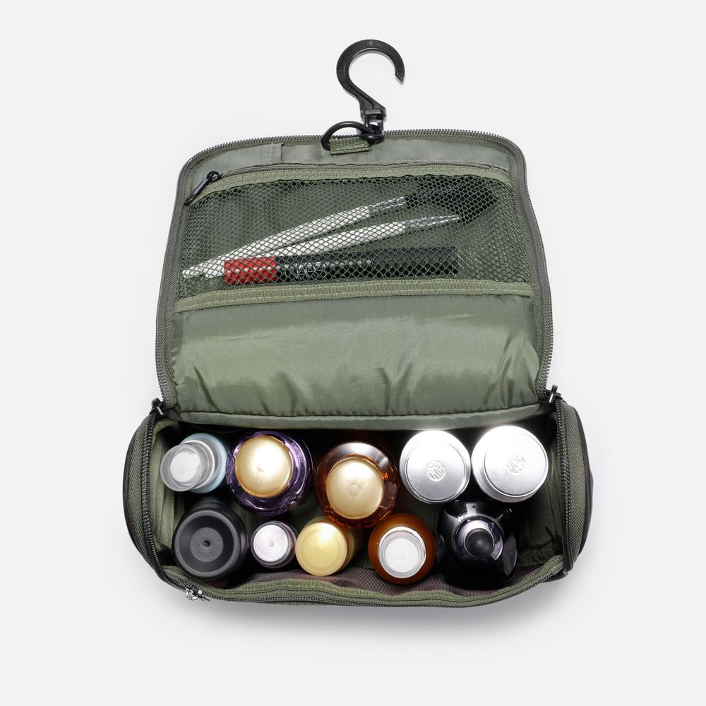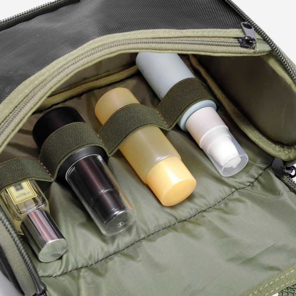 Эластичные держатели для хранения туалетных принадлежностей и организации пространства в основном отделении.