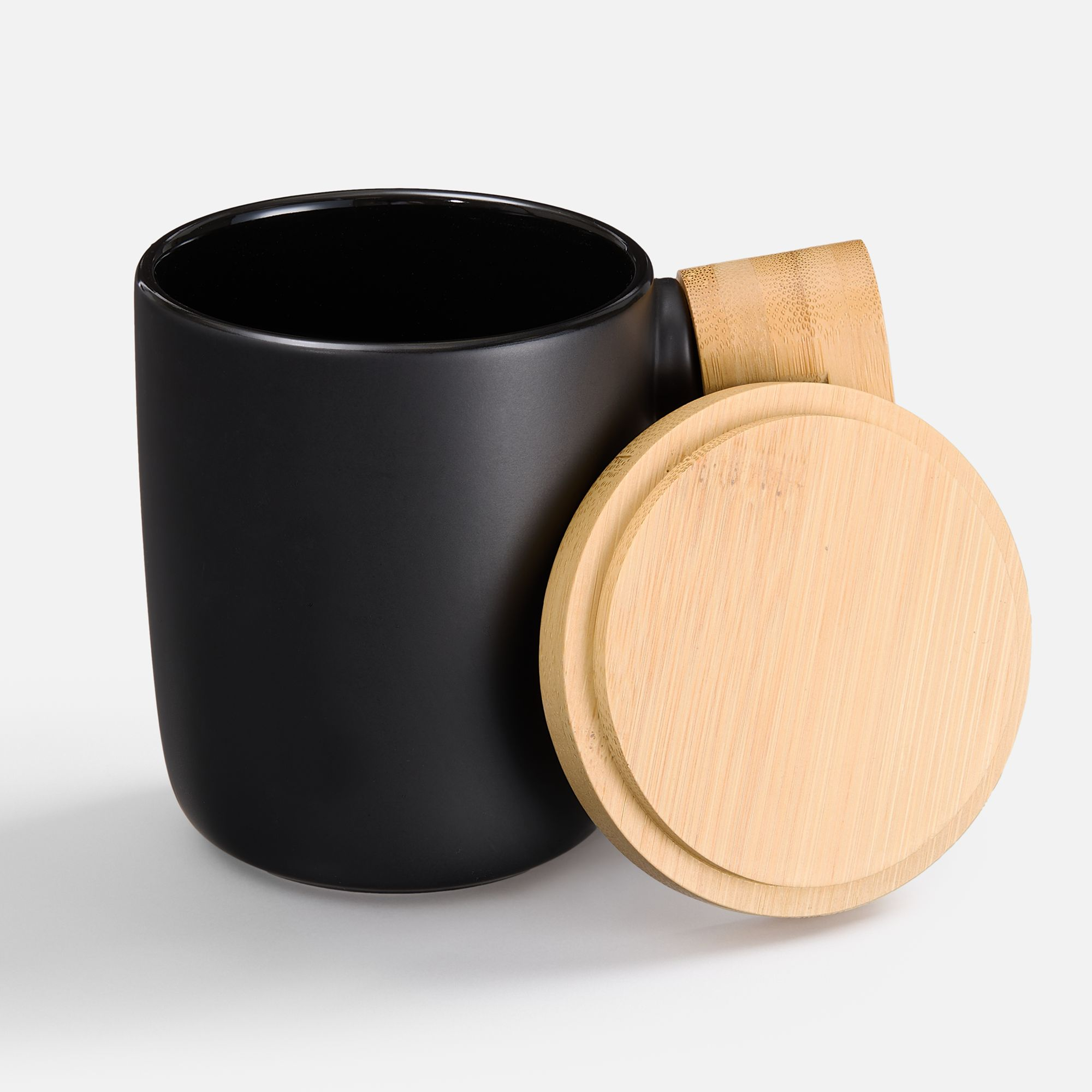 Стильная кружка с крышкой и ручкой из бамбука станет самой любимой на полке.