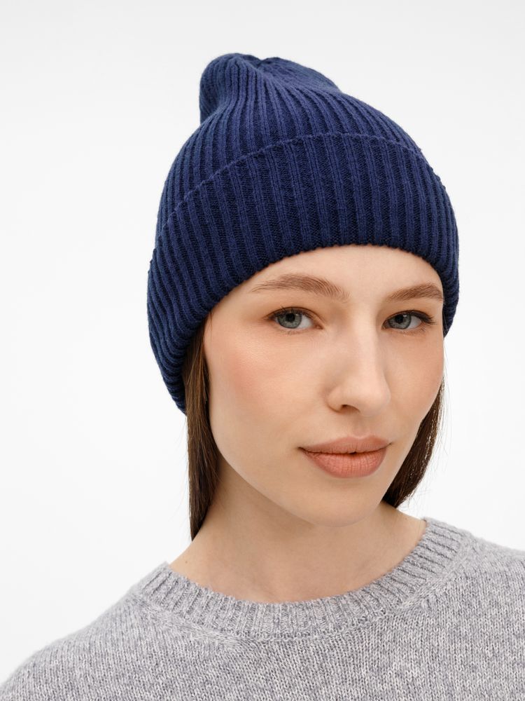 Однослойная шапка фактурной вязки с отворотом из мягкой полушерсти станет идеальным дополнением зимнего гардероба.