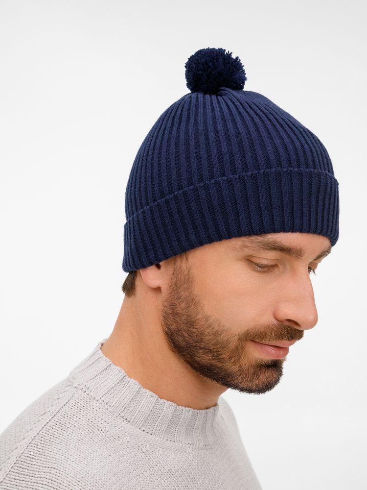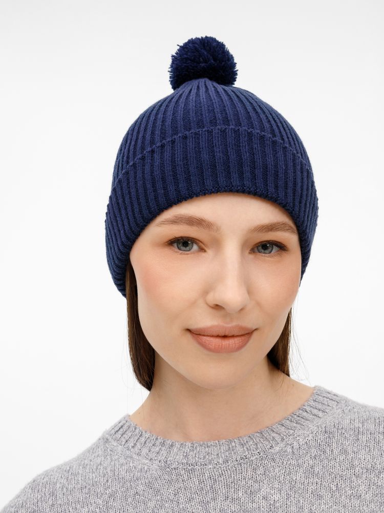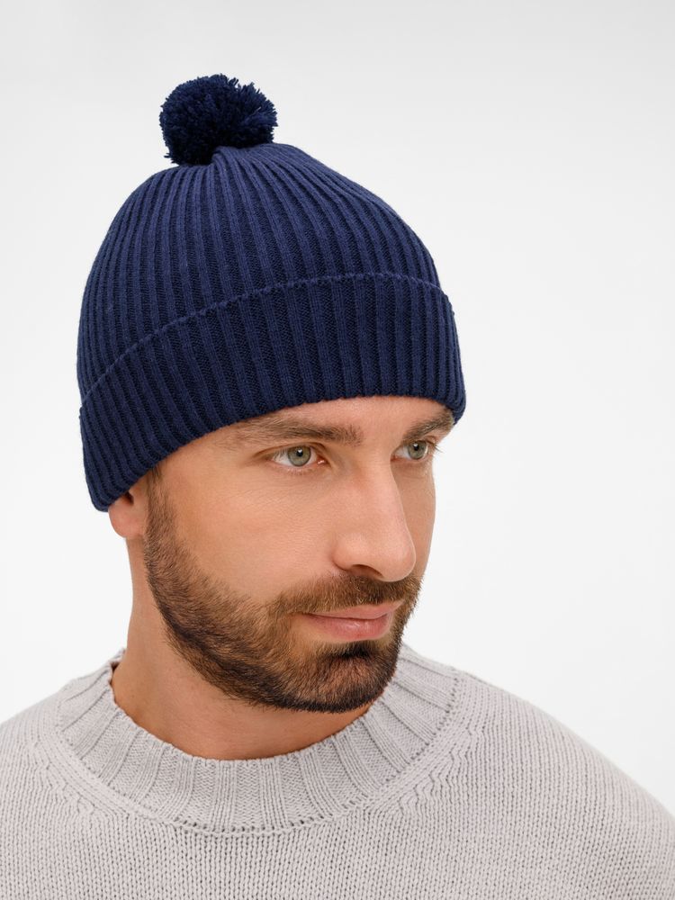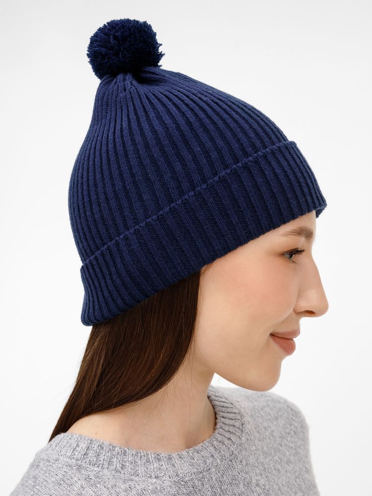 Однослойная шапка фактурной вязки с отворотом и помпоном из мягкой полушерсти станет идеальным дополнением зимнего гардероба.