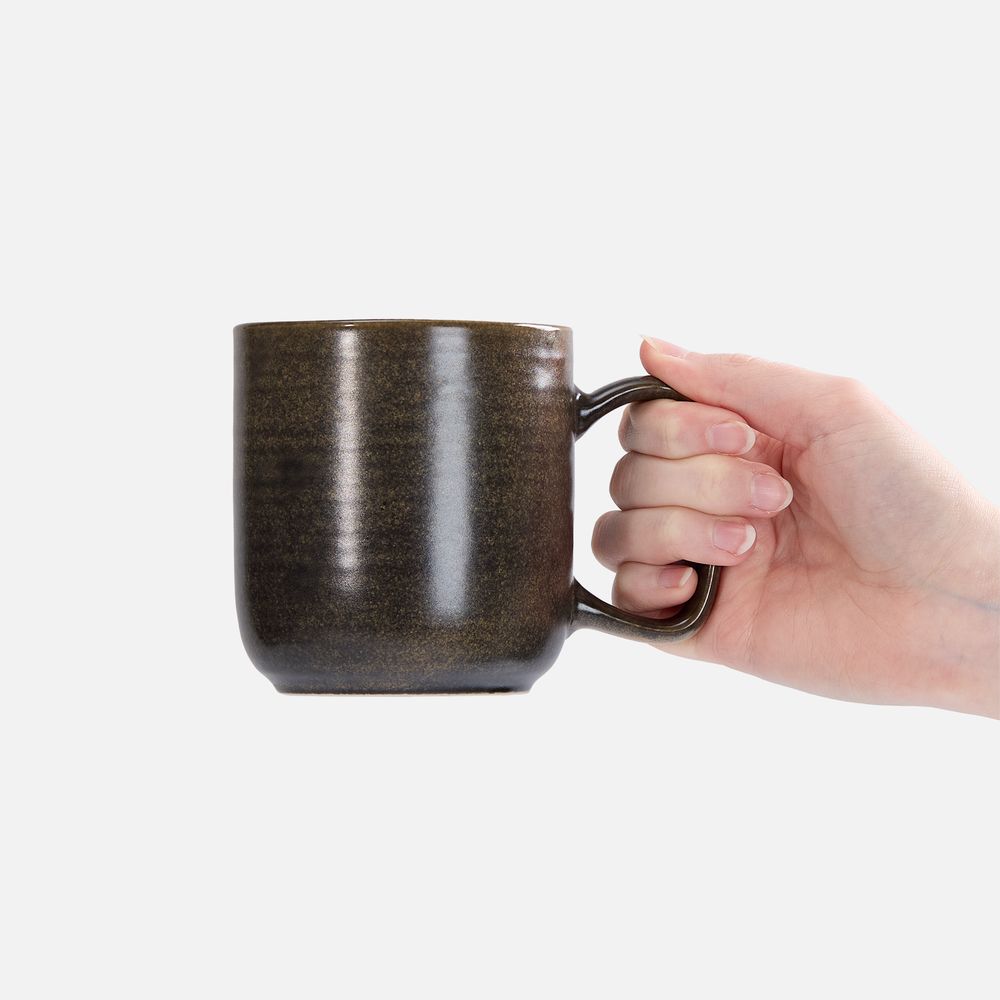 Кружка покрыта реактивной глазурью — особым видом керамического покрытия, компоненты которого вступают в химическую реакцию во время обжига при температуре 1200°C и выше.