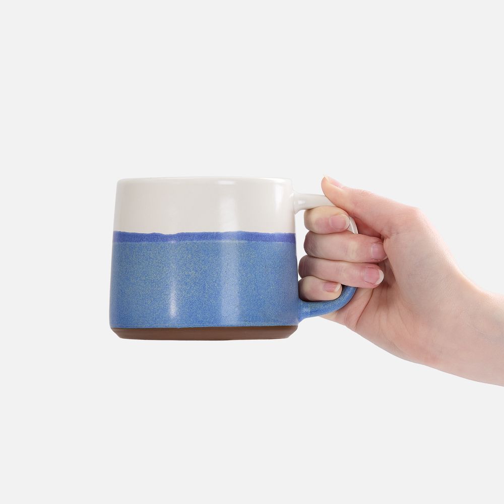 Нижняя половина кружки покрыта реактивной глазурью — особым видом керамического покрытия, компоненты которого вступают в химическую реакцию во время обжига при температуре 1200°C и выше.