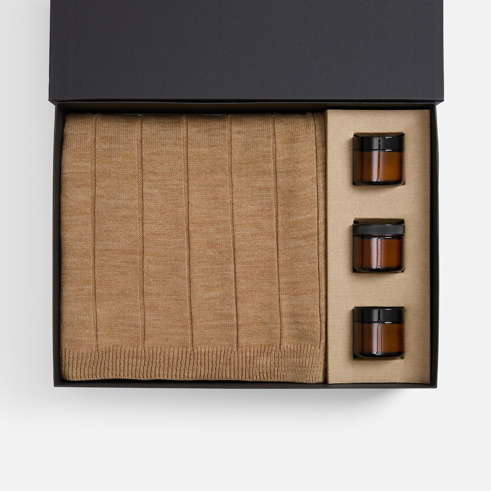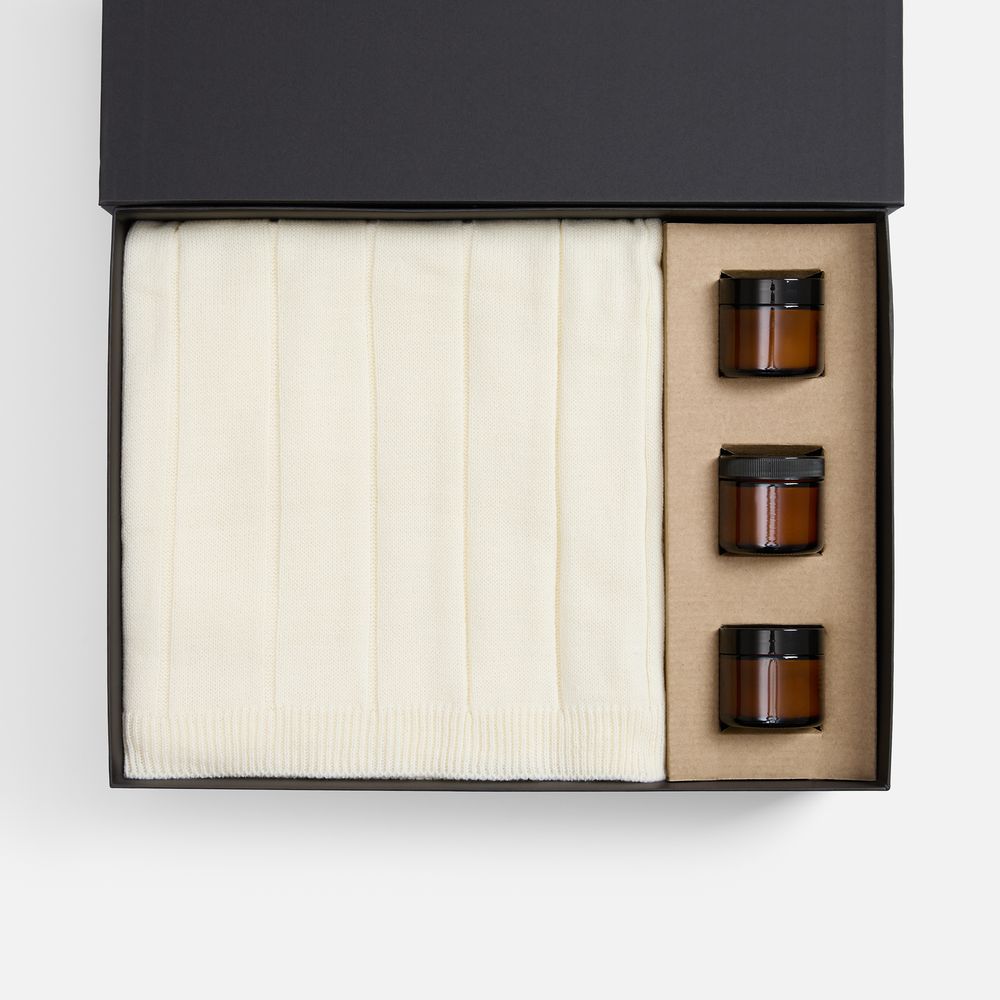 Набор Aromagia — готовое решение для укрепления деловых отношений с самым теплым посылом. Мягкий плед и три изысканных аромасвечи подарят атмосферу тепла, праздника и беззаботности.