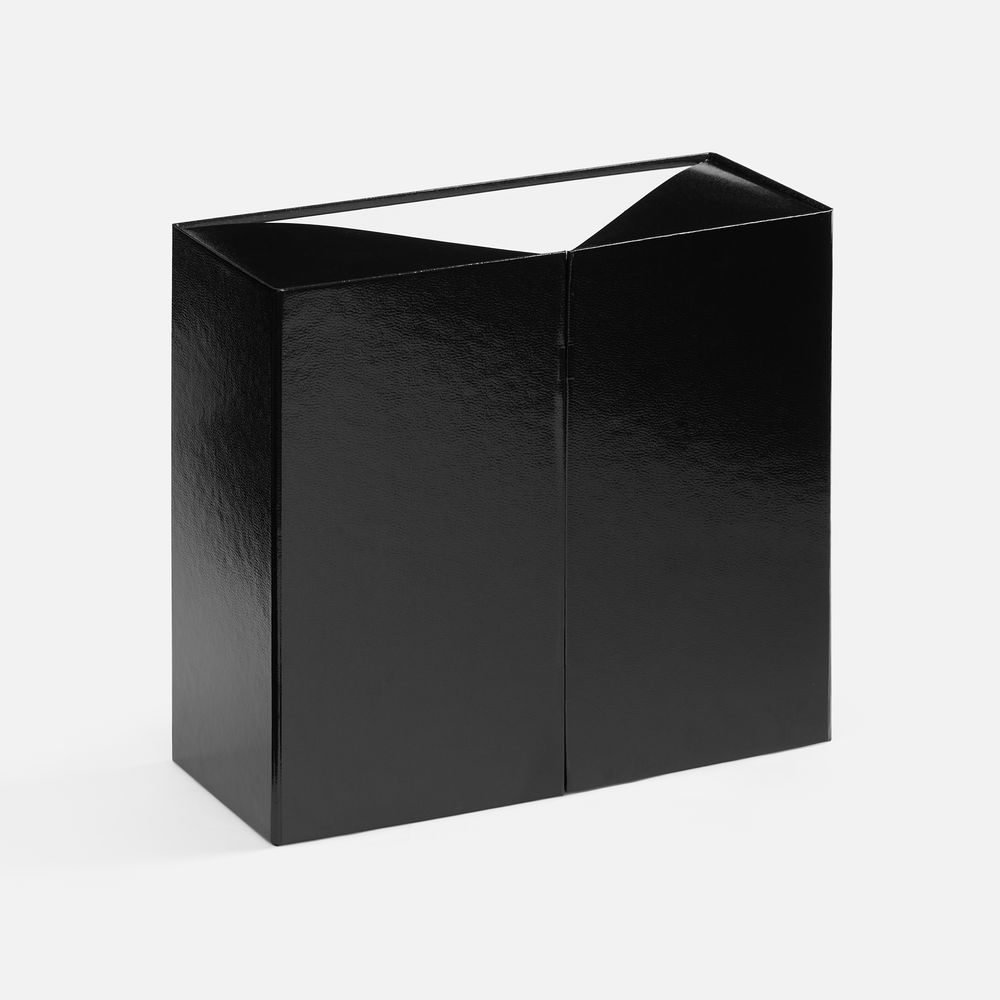 Коробка из переплетного картона 2 мм с оригинальной конструкцией: две симметричные створки открываются, создавая эффектную презентацию содержимого.