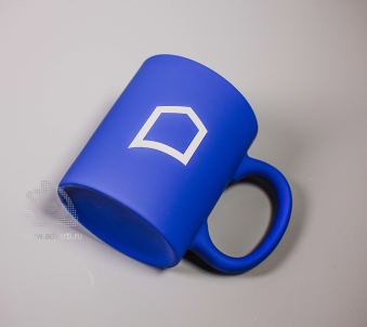 Кружка с покрытием софт-тач — бархатистым и дающим интересный эффект при гравировке: обнажается нижний слой белого цвета, отличающийся фактурой от софт-тач.