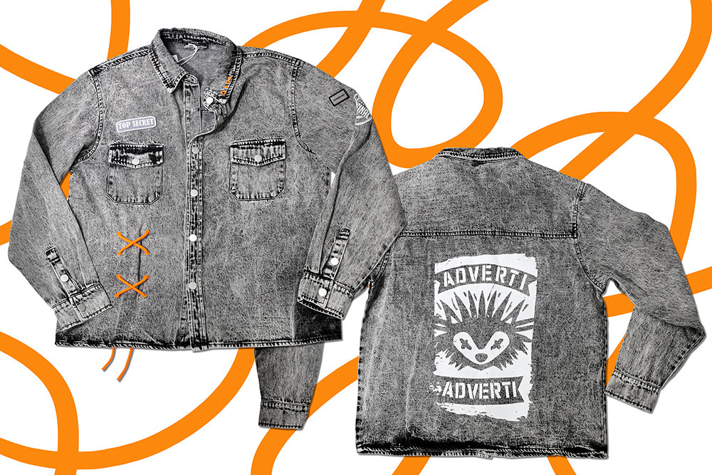 Когда нужно подчеркнуть креативность и нестандартный подход, мы не боимся экспериментировать! Мы сделали джинсовку для наших сотрудников, смело обыграв наш логотип ежа. Получился запоминающийся мерч, который отражает любовь к дерзкому дизайну и высоким стандартам качества.