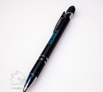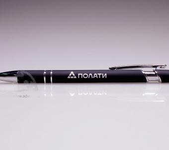 Ручка-стилус с бархатистым покрытием корпуса и серебристой фурнитурой, сияющей на бархатном фоне особенно ярко.