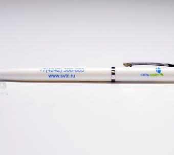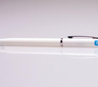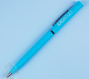 Пластиковая лакированная шариковая ручка с металлизированным серебристым клипом, кольцом и наконечником