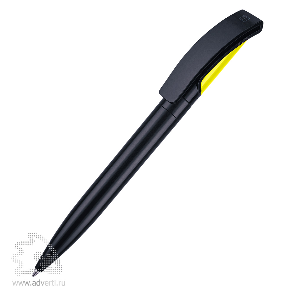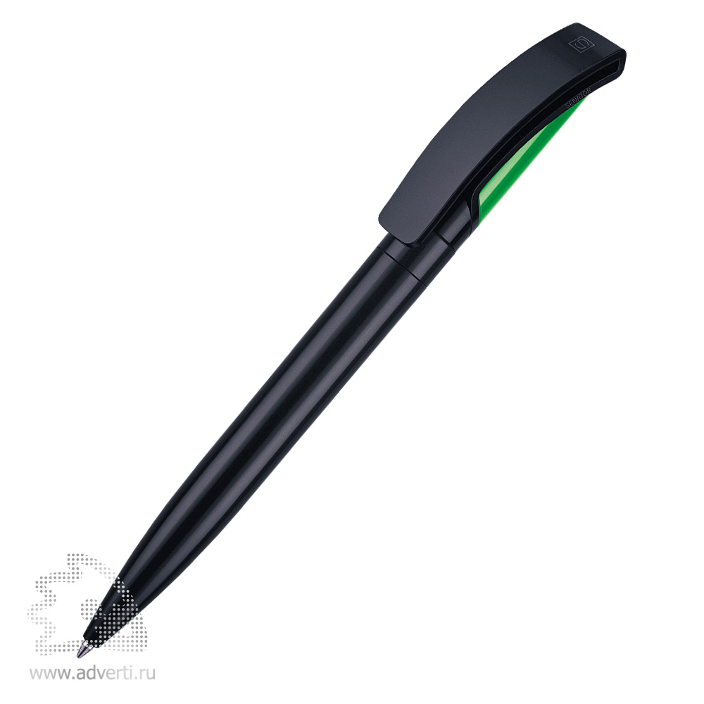 Шариковая ручка с поворотным механизмом, черный/белый корпус и клип, цветная вставка на клипе