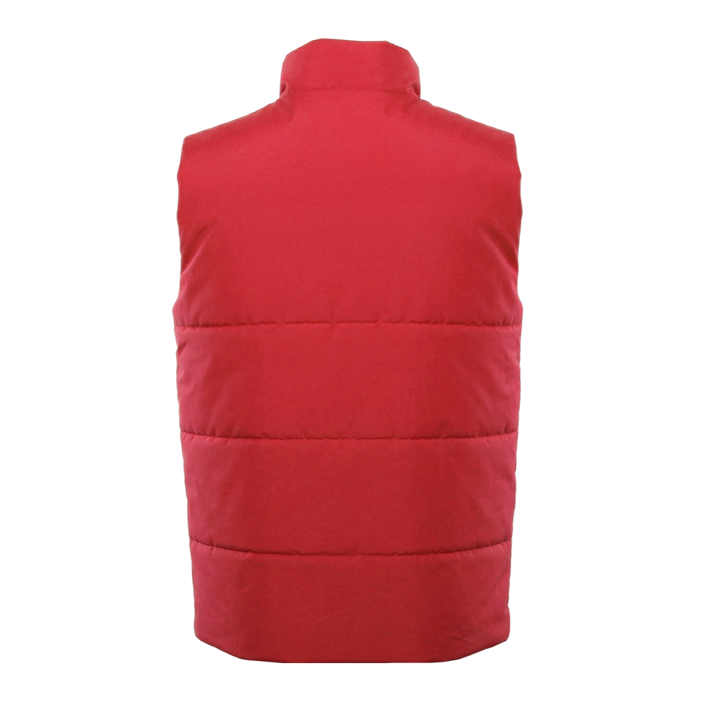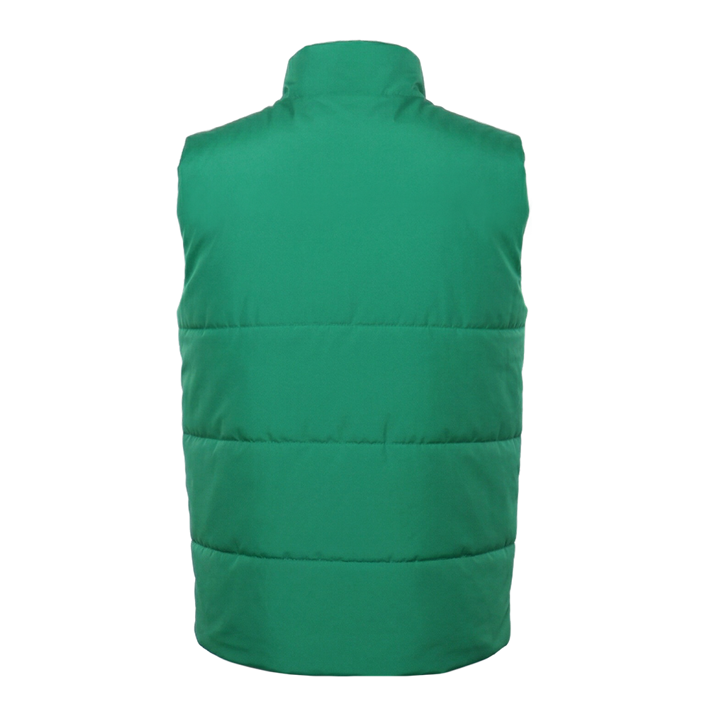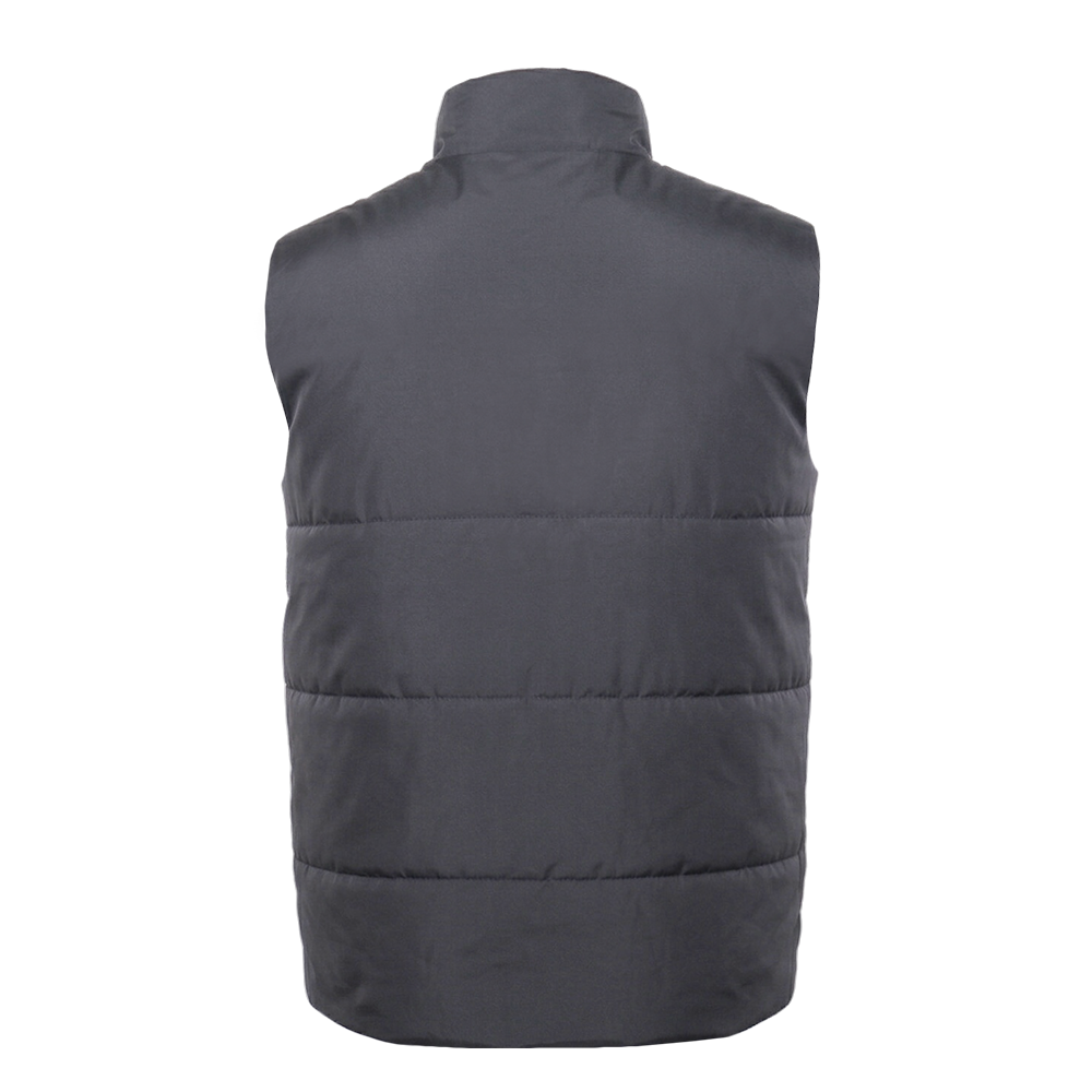 Утеплённый жилет полуприлегающего силуэта с воротником стойкой, центральной застежкой на молнию в тон основному полотну и прорезным карманом с листочкой.
