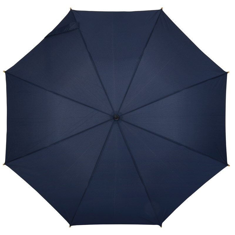 Автоматический зонт-трость LIPSI с металлическим стержнем, стекловолоконными ребрами, деревянными наконечниками и деревянной рукояткой, навес из полиэфирного эпонжа, изготовленного из переработанных пластмасс (Global Recycle Standard), закрытие на липучку.