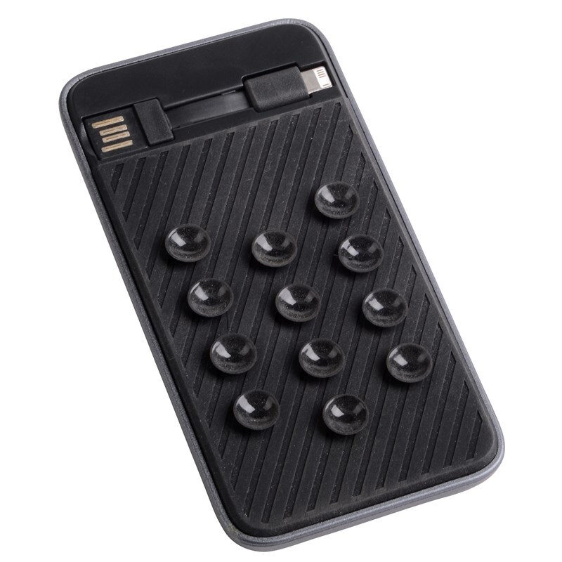 Powerbank OCTOPUS – идеальный источник запасной энергии: подходит для смартфонов и других устройств USB, встроенный съемный зарядный кабель 2 в 1 (длина ок. 6 см), 1 кабель для зарядки компьютера (длина ок. 30 см), с резиновыми присосками, благодаря чему повербанк можно прикрепить к смартфону, входная мощность: 5V/2A, выходная мощность: 5V/2A, время зарядки: ок. 4 ч.
