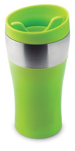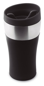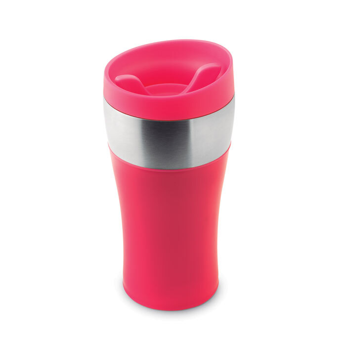 Термокружка с двойными стенками, нержавеющая сталь внутри, пластик снаружи. Металлическое кольцо снаружи, для лазерной гравировки.