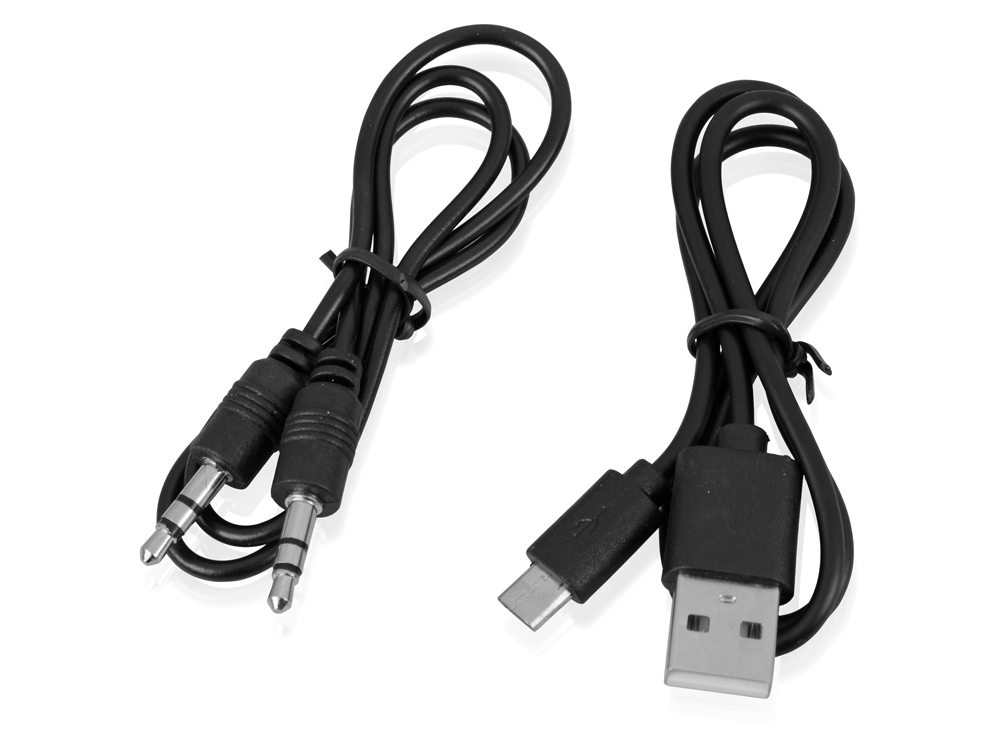 аудиодинамик, USB A - micro USB кабель, аудиокабель 3,5 мм, силиконовый ремешок для крепления колонки, подарочный чехол в виде мешочка, подарочная коробка