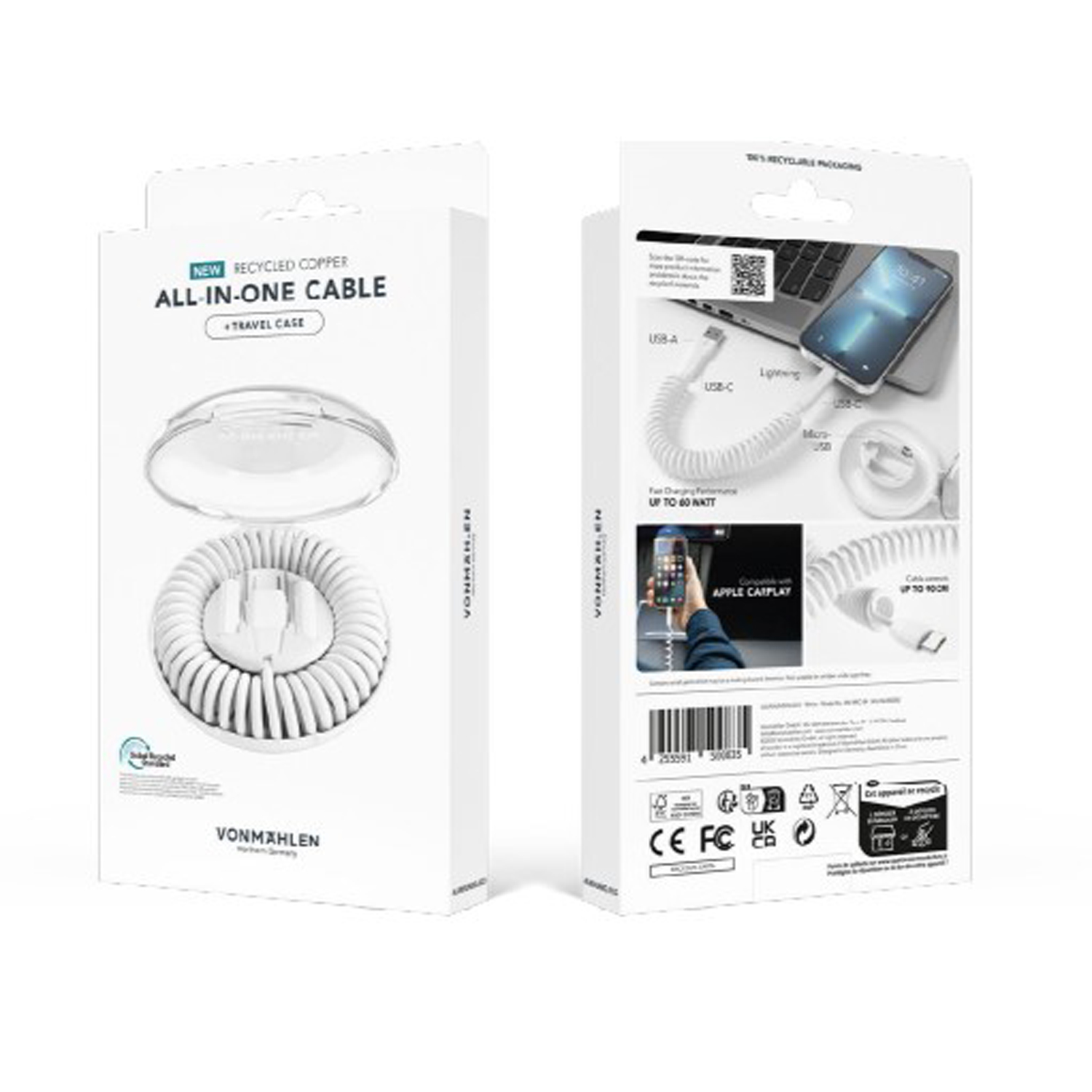 Универсальный кабель VONMAHLEN allroundo® eco 6 в 1 отличается компактными размерами и возможностью быстрой зарядки гаджетов. С его помощью можно не только зарядить, но и передать данные на устройство.