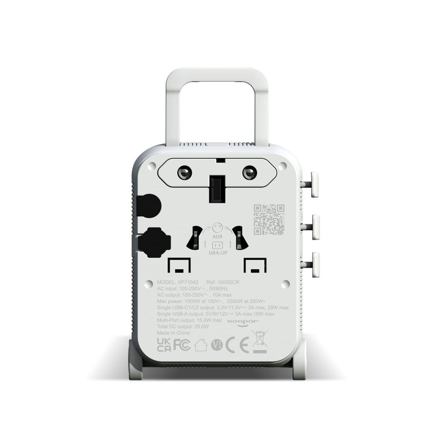 Благодаря уникальному дизайну в виде миниатюрного чемоданчика, Luggie — это универсальный адаптер сочетает в себе практичность и дух путешествий. Компактный и надежный, он работает более чем в 150 странах благодаря встроенным вилкам EU, UK, US и AUS. Оснащенный двумя портами USB-C (25 Вт, поддерживают быструю зарядку) и одним портом USB-A (15 Вт), он позволяет заряжать несколько устройств одновременно. Удобная кнопочная система обеспечивает легкое и быстрое переключение между типами вилок. Luggie — это умный аксессуар, который будет сопровождать вас везде: от коротких городских поездок до кругосветных путешествий, гарантируя, что вы всегда остаетесь на связи.