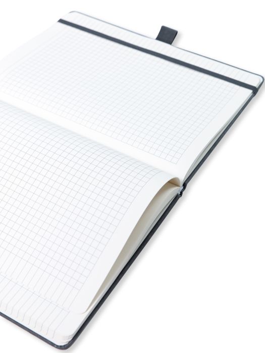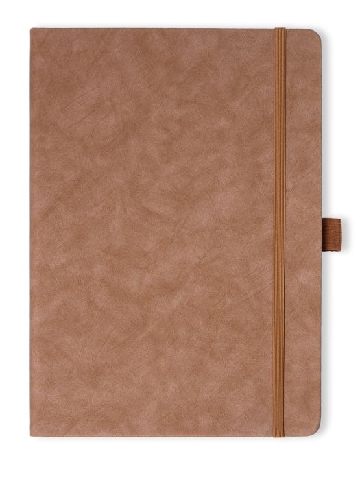У блокнота бежевая бумага плотностью 80 г/м² и практичная линовка.