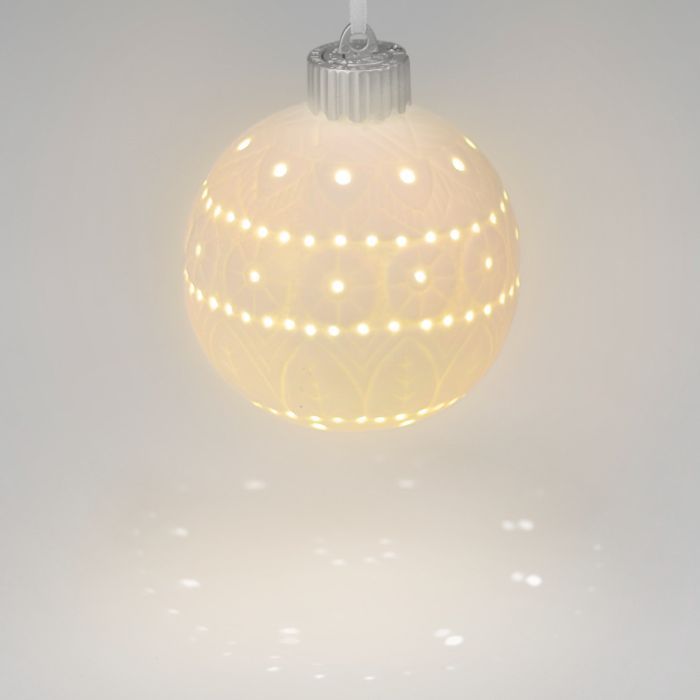Ёлочный керамический светящийся шар с узорами Potter купить сувенирную продукцию с логотипом на сайте adverti.ru