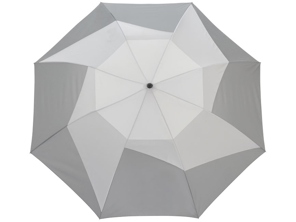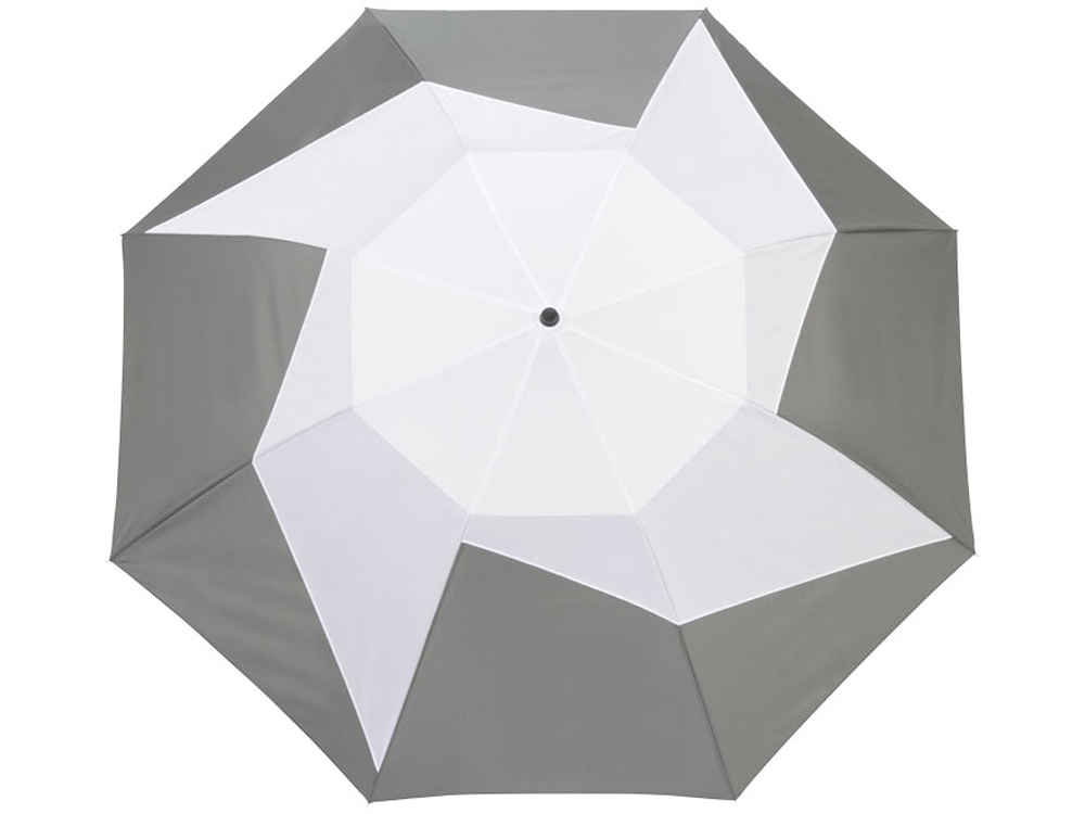 Зонт двухсекционный, 23". Вентилируемый купол, металлическая трость и спицы. Ручка и чехол в цвет, чехол с ремешком на плечо.Купол украшен геометрическим рисунком.